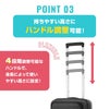 好奇心を満たすワクワクするような旅の気分を表現した「CURIO(キュリオ)」は、グルーヴィーなデザインが特徴のトラベルコレクションです。 ブックオープニングの3型は、衝撃を吸収することで凹凸のある道でも安定した走行性を発揮し、スムーズに移動をサポートするサスペンションホイールを装備。 また、ファスナーを開閉することで簡単に容量を調節することができ、旅先で荷物が増えても安心のエキスパンダブル機能も搭載しています。 回収したPETボトルを100%原料とする生地がつかわれた内装には、荷崩れを防止するクロスストラップと、小物収納用のポケットが付属しています。 ブックオープニング仕様のS,M,Lサイズはメイン収納部を広く・深くキープすることで厚みのある荷物でも楽にパッキングすることができます。 フタの部分にはファスナー付きのポケットも備えられており、小物類などがすっきりと収納することができます。 ・エキスパンダブルにより、容量を増やすことが可能です。 ・SP55のプルハンドルは4段階調節可能で、幅広い身長の方に対応可能です。※一般的に2段階のものが多い。 ・ブックオープン仕様のため、蓋部分が重くならず、狭い場所でも簡単に開閉が可能です。 蓋部分にはポーチのようにマチのある収納がつくので、洗顔用品等を効率的に収納ができる。 ・OPTIMOVにより、タイル面や凸凹のある舗装道路など、細かな振動を吸収し、スムースな走行が可能です。 ・DUOSAFにより、通常のファスナーより開けづらい構造です。 ※務歯が二重になっていることでこじ開けにくい構造です。