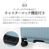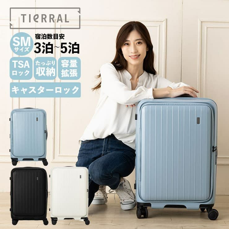 TIERRAL TOMARU(トマル)は最新素材「PET樹脂」を採用した高機能キャリーケース。ワンタッチでできるキャスターロック機能が付いており、電車など移動の際にスーツケースが勝手に動かないよう固定できます。4輪静音ダブルキャスターで路面を選ばずにスムーズな走行が可能です。荷物が重い時や混みあう場所は4輪で、デコボコした道では本体を傾けて2輪で状況に応じた走行が可能です。優れた弾性により耐衝撃性が高く、加えて高級感のある発色が特徴の「PET樹脂」を採用。スムーズな走行を可能にする静音ダブルホイールキャスターや快適な収納機能で、使い勝手も抜群。TIERRAL樹脂特有の高級感のある色味とスタイリッシュなデザインがあなたの旅を快適かつエレガントに彩ります。50Lサイズは4~5泊程度の旅行に適したサイズで、無料預入対応です(泊数は目安としてご利用下さい)。