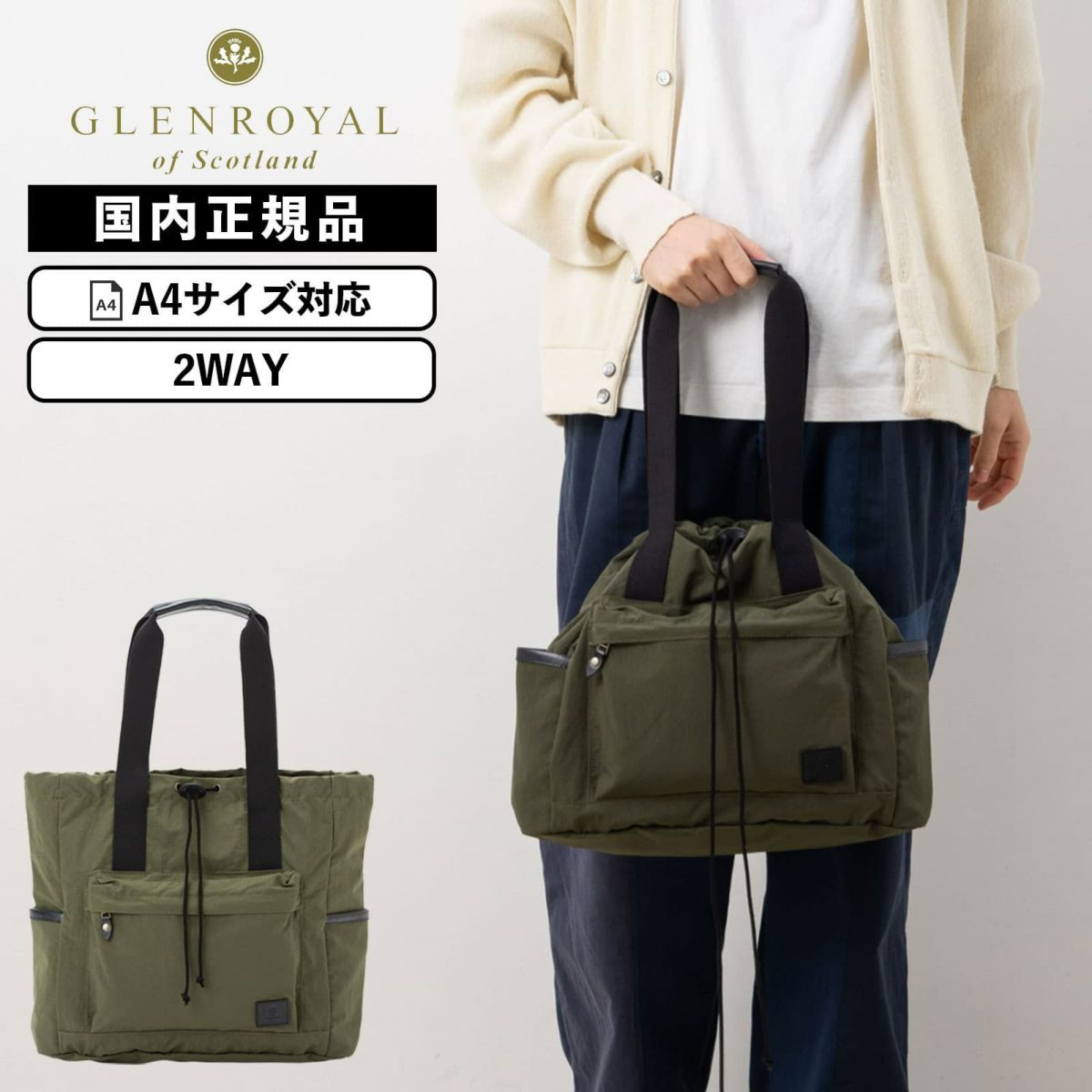 【GLENROYAL グレンロイヤル】 DRAWCORD TOTE BAG_NYLON TUSSORE トートバッグ CONTEMPORARY COLLECTION