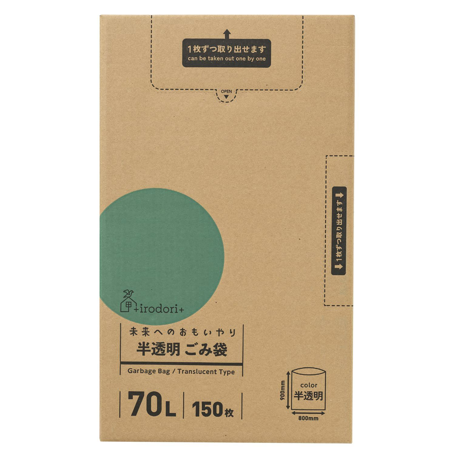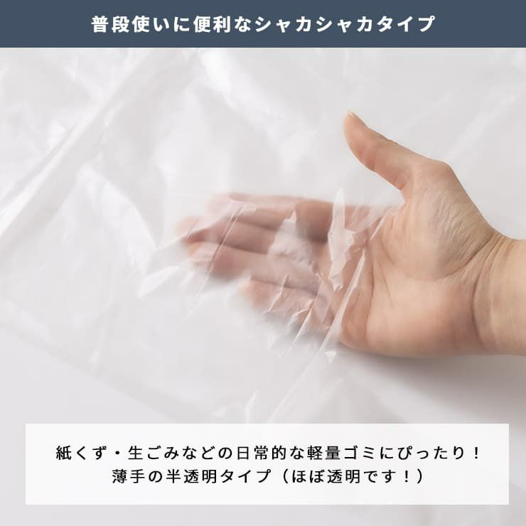 スリムな箱タイプ。冷蔵庫やごみ箱の横、引き出しや棚などにスッキリ収納できます。<収納方法・場所に合わせて横置き・縦置き自由自在>縦置き・横置きどちらにも対応できる2ヶ所の取出し口。ご自宅の収納方法や場所にあわせてお使いください。<コスパ抜群のシャカシャカタイプ>日々使いに最適なシャカシャカタイプ。薄手の半透明タイプ(ほぼ透明です!)<「ふとした工夫で日々の生活を彩る」そんなブランドを目指しています>+irodori+は環境素材を使用。使いやすさ・収納性にこだわったアイテムを揃えました。日々の生活にちょっとプラスをお届けします。<地球と未来に思いやりを>サトウキビ由来のバイオマス原料を10%配合、パッケージに使用するインクにバイオマスインク使用。化石燃料の使用量を削減しさらにCO2の増加を抑制します。環境に配慮したエコロジーな商品です。日々使うもので未来への思いやりを!