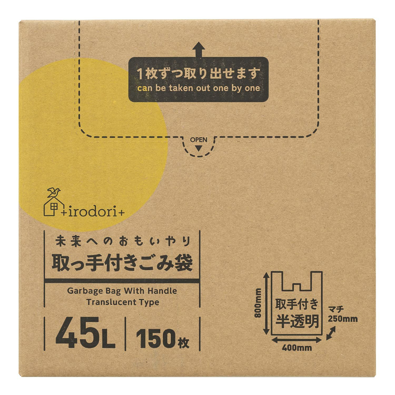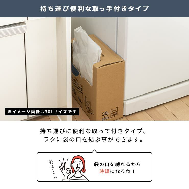 スリムな箱タイプ。冷蔵庫やごみ箱の横、引き出しや棚などにスッキリ収納できます。<持ち運び便利な取って付きタイプ♪>持ち運びに便利な取って付きタイプ。ラクに袋の口を結ぶ事ができます。<コスパ抜群のシャカシャカタイプ>日々使いに最適なシャカシャカタイプ。薄手の半透明タイプ(ほぼ透明です!)持ち運びや結ぶのに便利な取って付きタイプ。<「ふとした工夫で日々の生活を彩る」そんなブランドを目指しています>+irodori+は環境素材を使用。使いやすさ・収納性にこだわったアイテムを揃えました。日々の生活にちょっとプラスをお届けします。<地球と未来に思いやりを>サトウキビ由来のバイオマス原料を10%配合、パッケージに使用するインクにバイオマスインク使用。化石燃料の使用量を削減しさらにCO2の増加を抑制します。環境に配慮したエコロジーな商品です。日々使うもので未来への思いやりを!