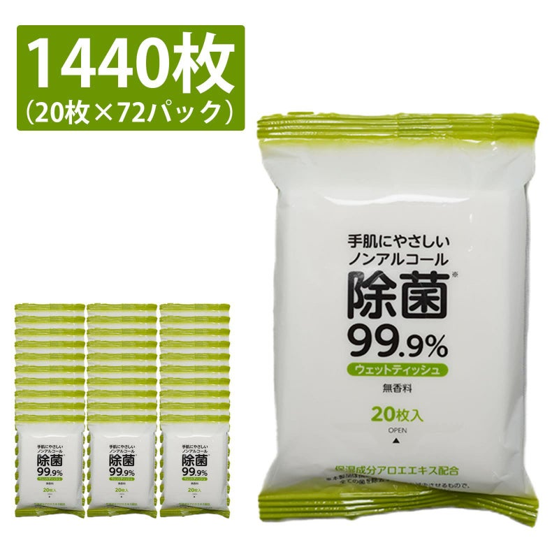 - 携帯用 ウェットティッシュ 1440枚 (20枚入×72個)