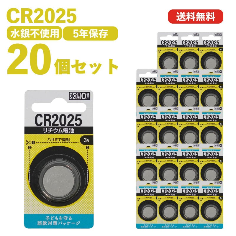 - コイン電池 CR2025 20個セット(1個入り×20パック)