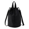 綿100%の中厚地カットソー素材を表面に、裏面にはナイロン100%のエコリップを用いたドローストリングショルダーです。