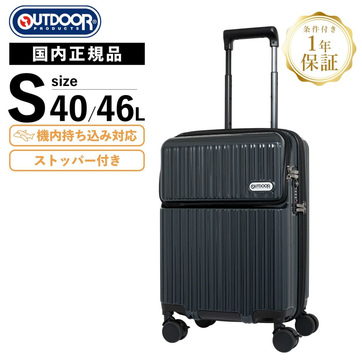 【OUTDOOR PRODUCTS アウトドアプロダクツ】 スーツケース Sサイズ ストッパー付き 機内持ち込み 40-46L
