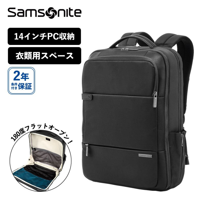 180度フラットに開き衣類用スペースを確保したバックパック。1泊程度の出張におすすめです。