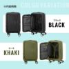 好奇心を満たすワクワクするような旅の気分を表現した「CURIO(キュリオ)」は、グルーヴィーなデザインが特徴のトラベルコレクションです。 ブックオープニングの3型は、衝撃を吸収することで凹凸のある道でも安定した走行性を発揮し、スムーズに移動をサポートするサスペンションホイールを装備。 また、ファスナーを開閉することで簡単に容量を調節することができ、旅先で荷物が増えても安心のエキスパンダブル機能も搭載しています。 回収したPETボトルを100%原料とする生地がつかわれた内装には、荷崩れを防止するクロスストラップと、小物収納用のポケットが付属しています。 ブックオープニング仕様のS,M,Lサイズはメイン収納部を広く・深くキープすることで厚みのある荷物でも楽にパッキングすることができます。 フタの部分にはファスナー付きのポケットも備えられており、小物類などがすっきりと収納することができます。 ・エキスパンダブルにより、容量を増やすことが可能です。 ・SP55のプルハンドルは4段階調節可能で、幅広い身長の方に対応可能です。※一般的に2段階のものが多い。 ・ブックオープン仕様のため、蓋部分が重くならず、狭い場所でも簡単に開閉が可能です。 蓋部分にはポーチのようにマチのある収納がつくので、洗顔用品等を効率的に収納ができる。 ・OPTIMOVにより、タイル面や凸凹のある舗装道路など、細かな振動を吸収し、スムースな走行が可能です。 ・DUOSAFにより、通常のファスナーより開けづらい構造です。 ※務歯が二重になっていることでこじ開けにくい構造です。