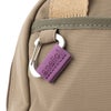 スエードタッチ生地をカラーアクセントにしたカラビナパーツなど、こだわりのディティールです。
