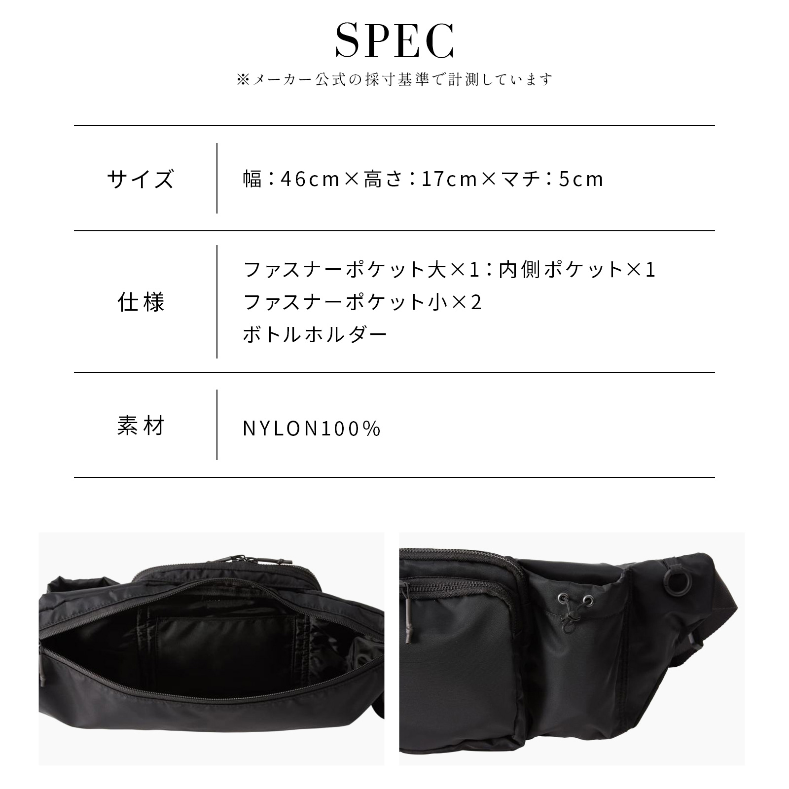 - ファスナーポケット大×1:内側ポケット×1