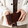 片手に収まるコンパクトなサイズ感の3つ折り財布です。