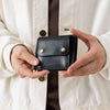 北米産のミモザから抽出されたタンニンを使い、じっくりと時間をかけてピット層にて鞣されたレザーで、ハリがあり軽量ながら耐久性を兼ね備えています。