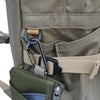 ブランドタグにはYKK社製のクイックロンにエンボス樹脂加工でブランドロゴをプリントしたものをアクセント、タグの下生地には600dポリエステルのベースにポリウレタンコーティングを使用した生地を使用しております。