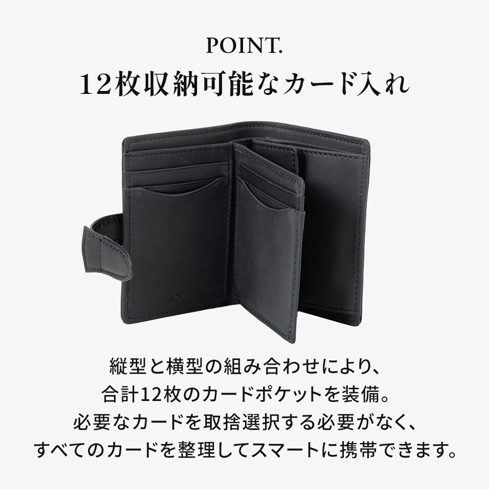 長財布が持つ優れた収納力をそのままにコンパクトなサイズに収めました。