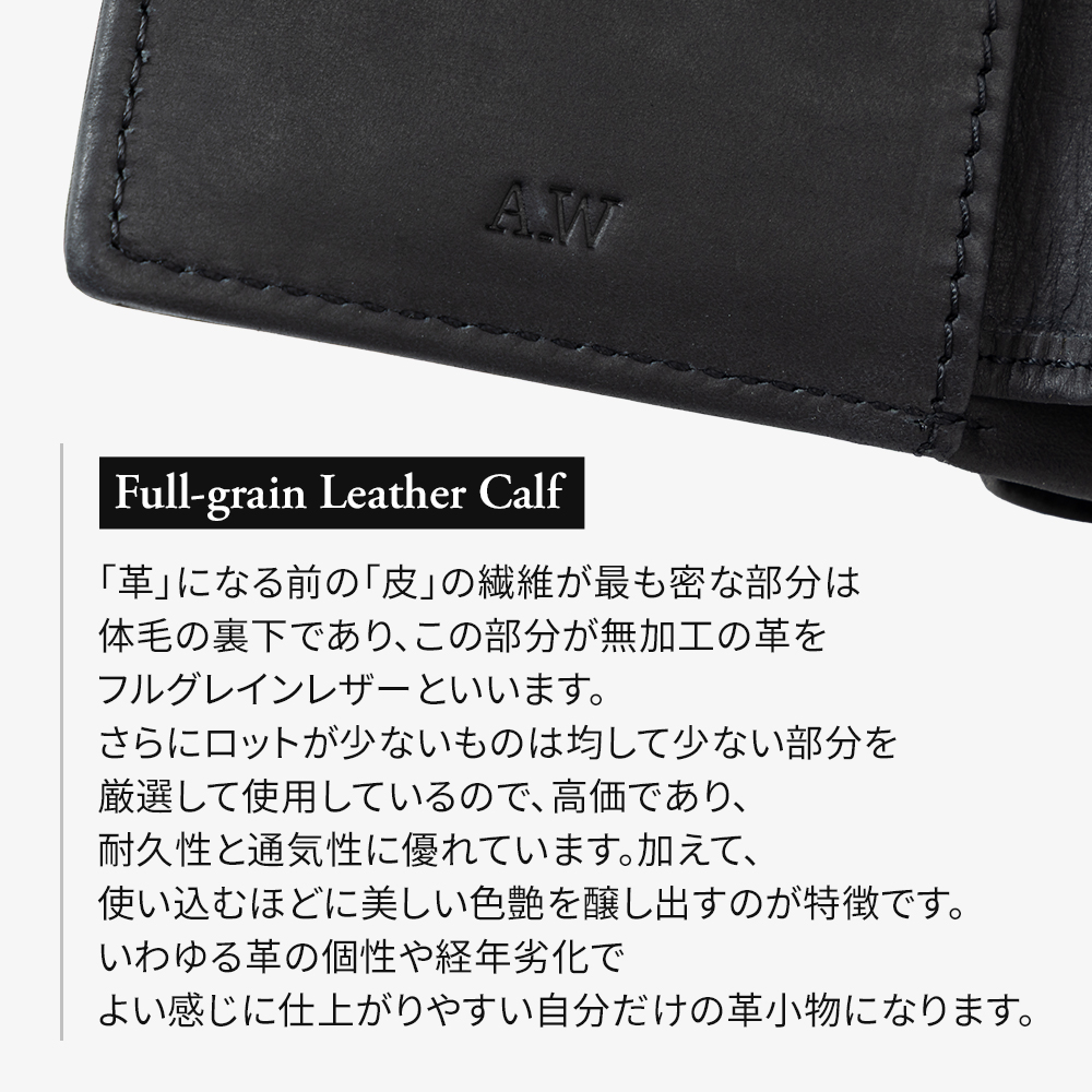 アンティーク感のあるランダムな斑模様は古くからの技法を応用し、試行錯誤を経て作られた本革です。