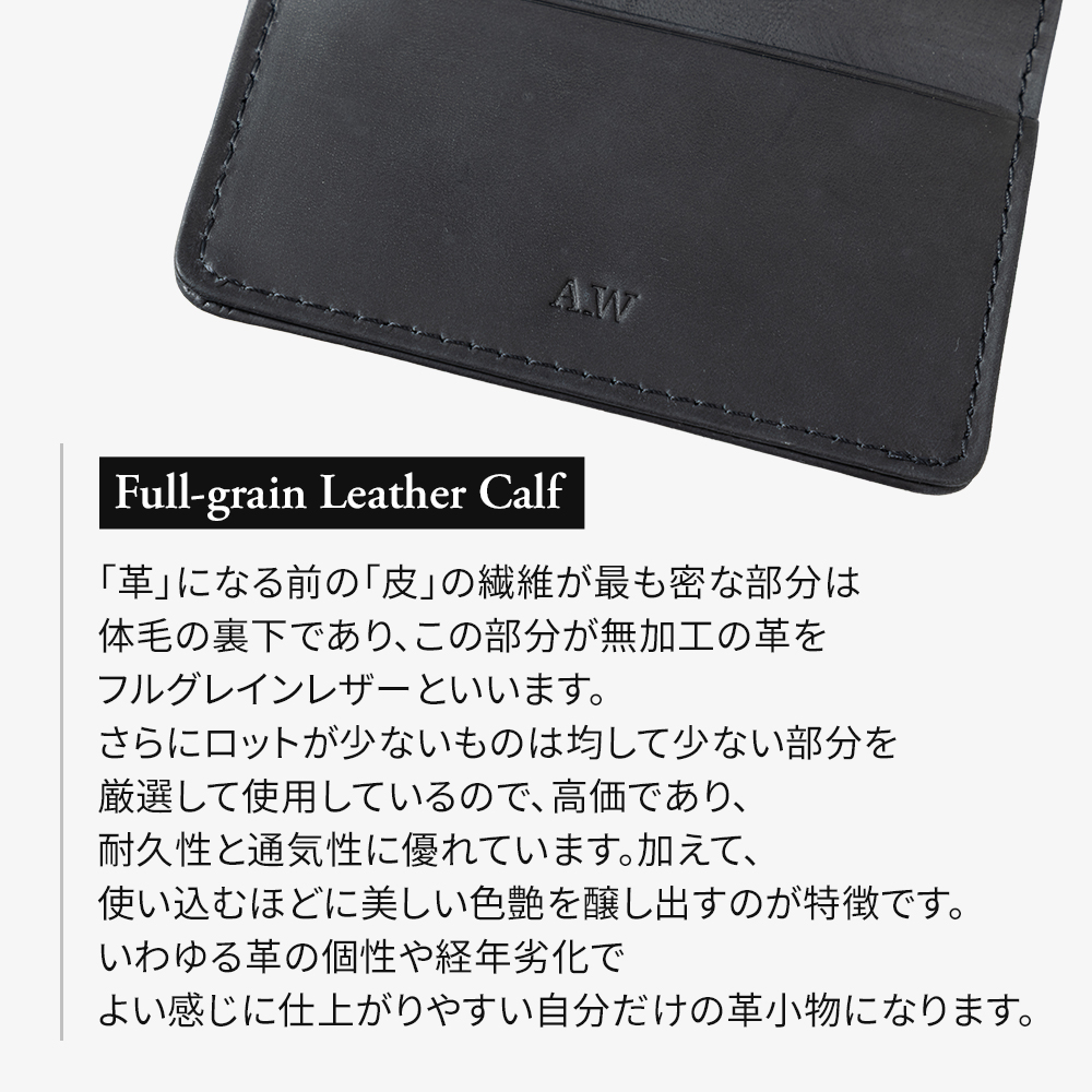 アンティーク感のあるランダムな斑模様は古くからの技法を応用し、試行錯誤を経て作られた本革です。