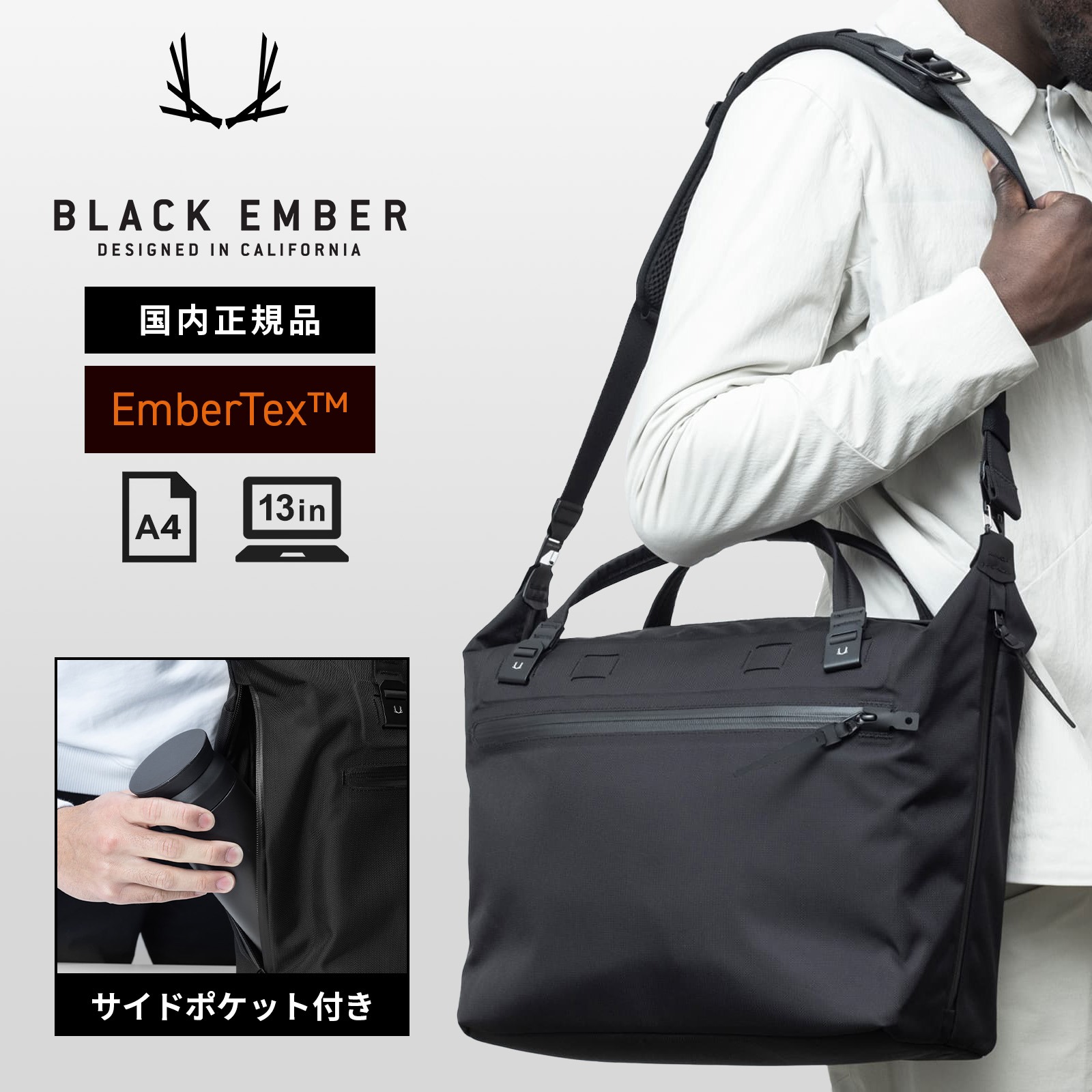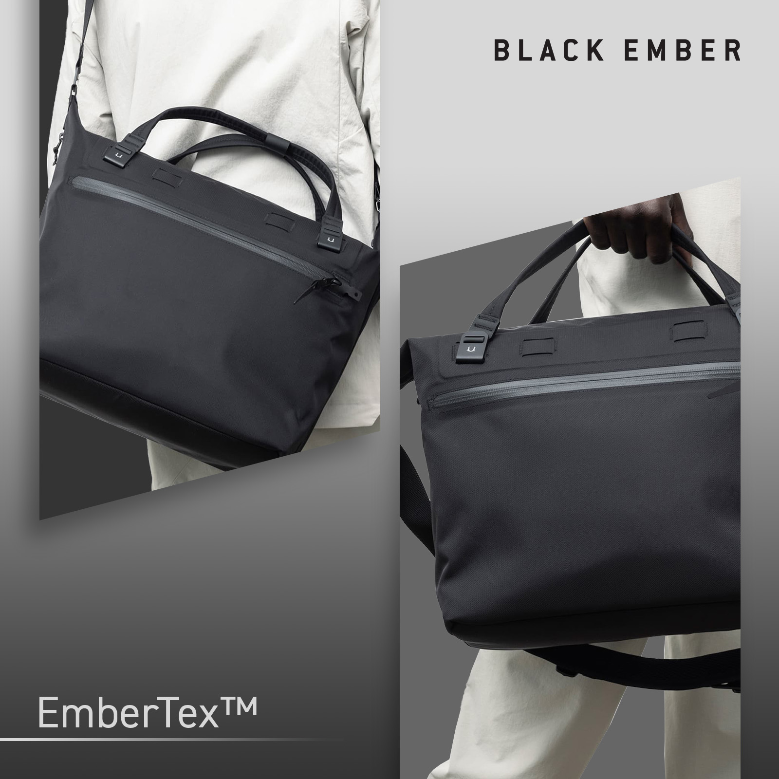 WPT SHOULDER TOTE EmberTex TM はニューテキスタイル「EmberTex TM」を導入したバッグで、雨の際も内側を濡らすことなく整理整頓しやすい様設計されています。