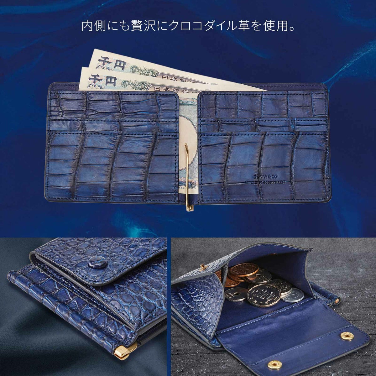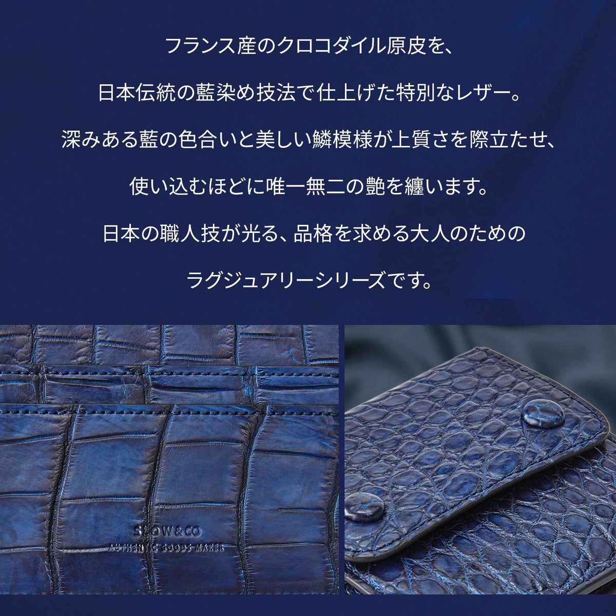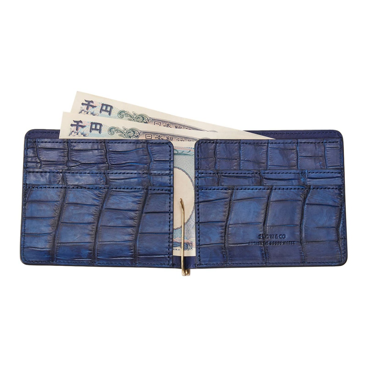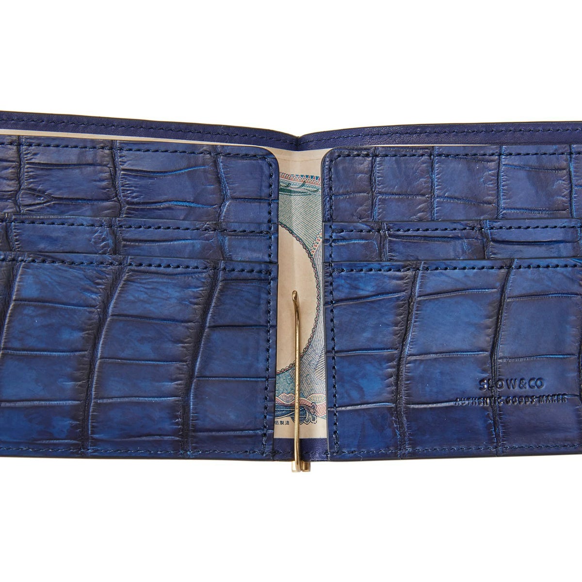 【SLOW スロウ】 CROCODILE MONEY CLIP 藍染め 財布 二つ折り ミニ財布