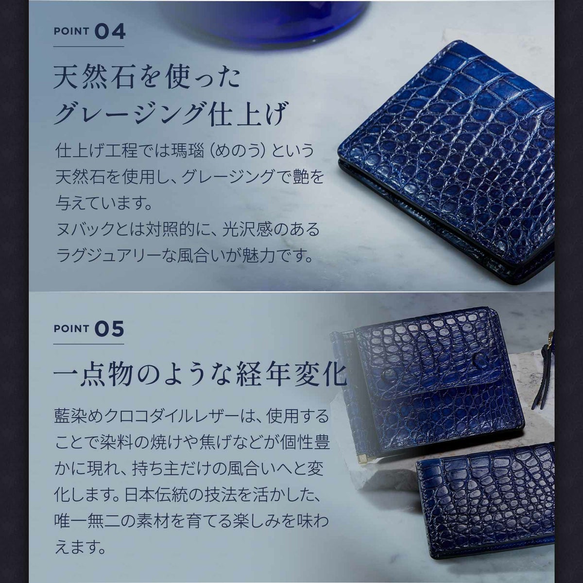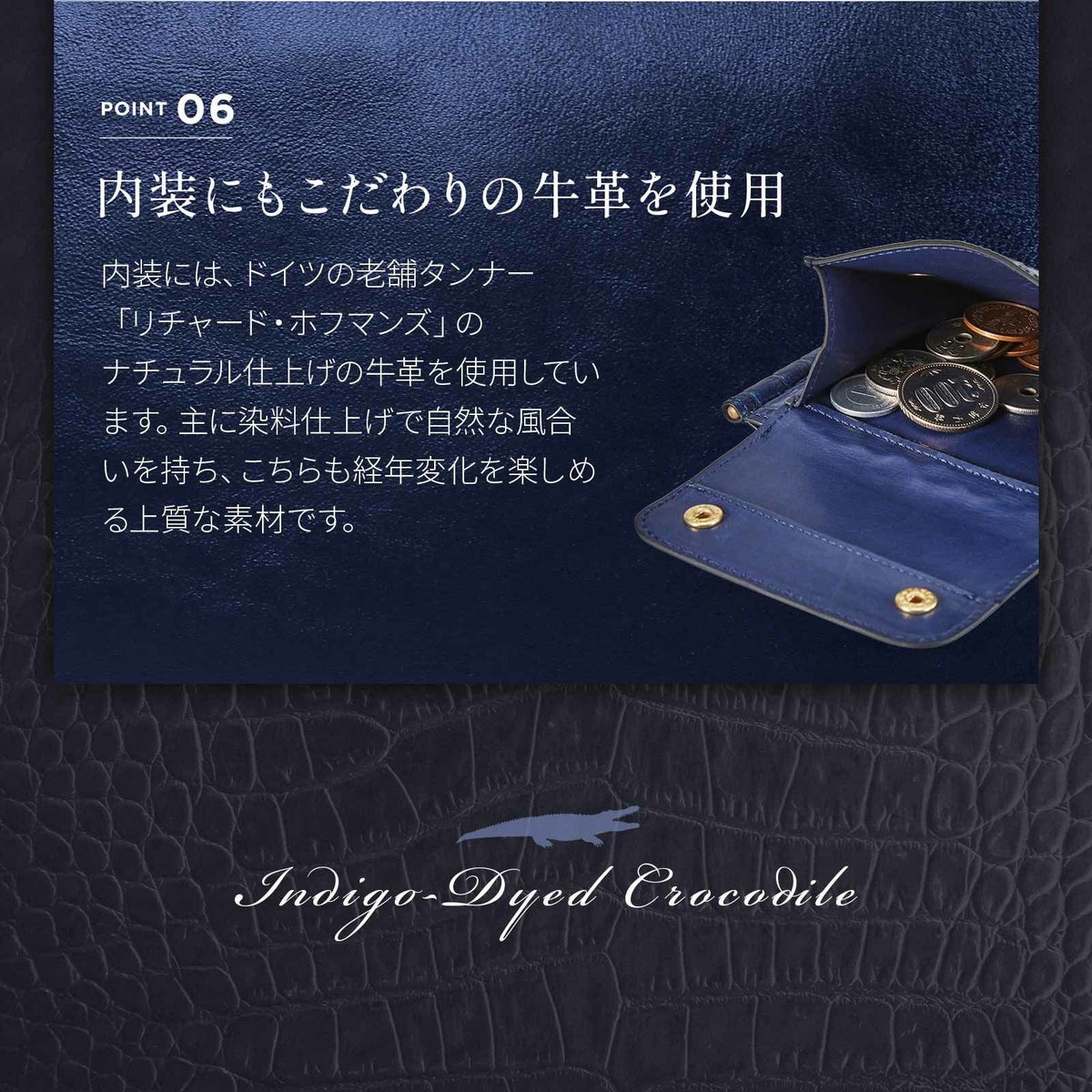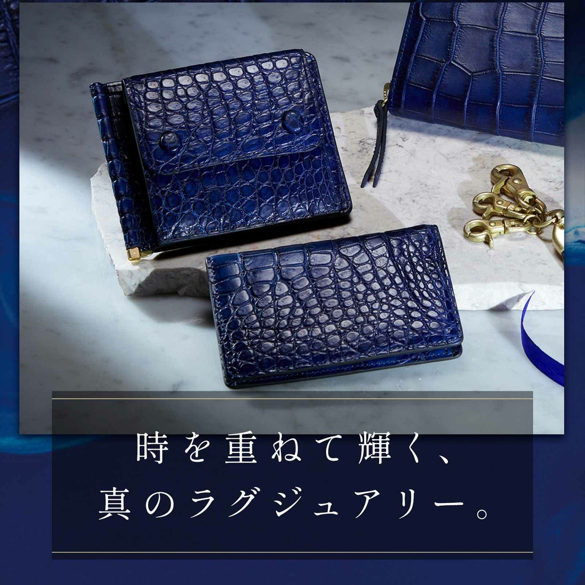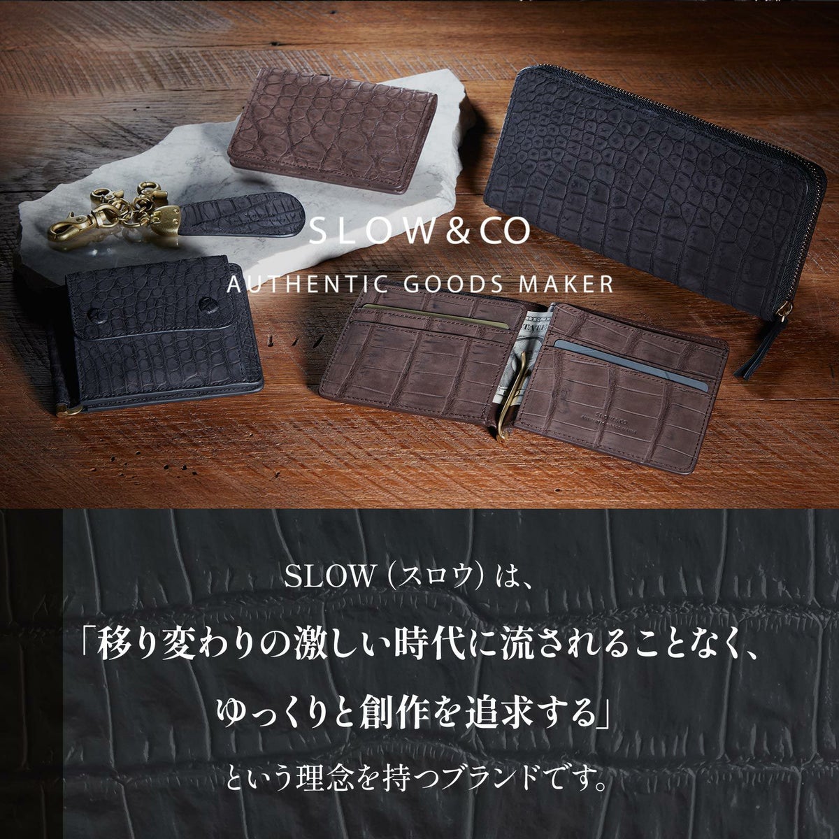 【SLOW スロウ】 CROCODILE MONEY CLIP 藍染め 財布 二つ折り ミニ財布
