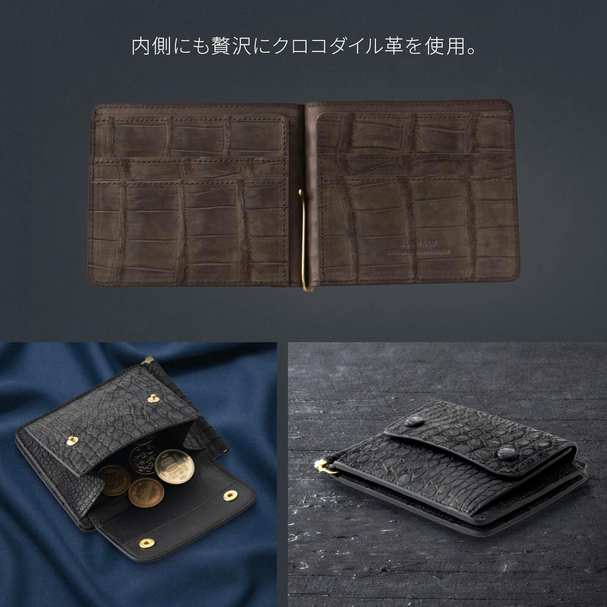 【SLOW スロウ】 CROCODILE MONEY CLIP クロコダイル 二つ折り財布